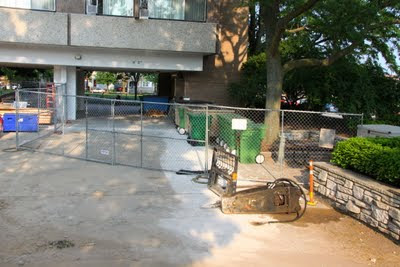 Another dusty site nearby on Lake St. Note leaking fluid, mixing with dust. The white is likely concrete dust from cutting with a saw--very toxic to the lungs.